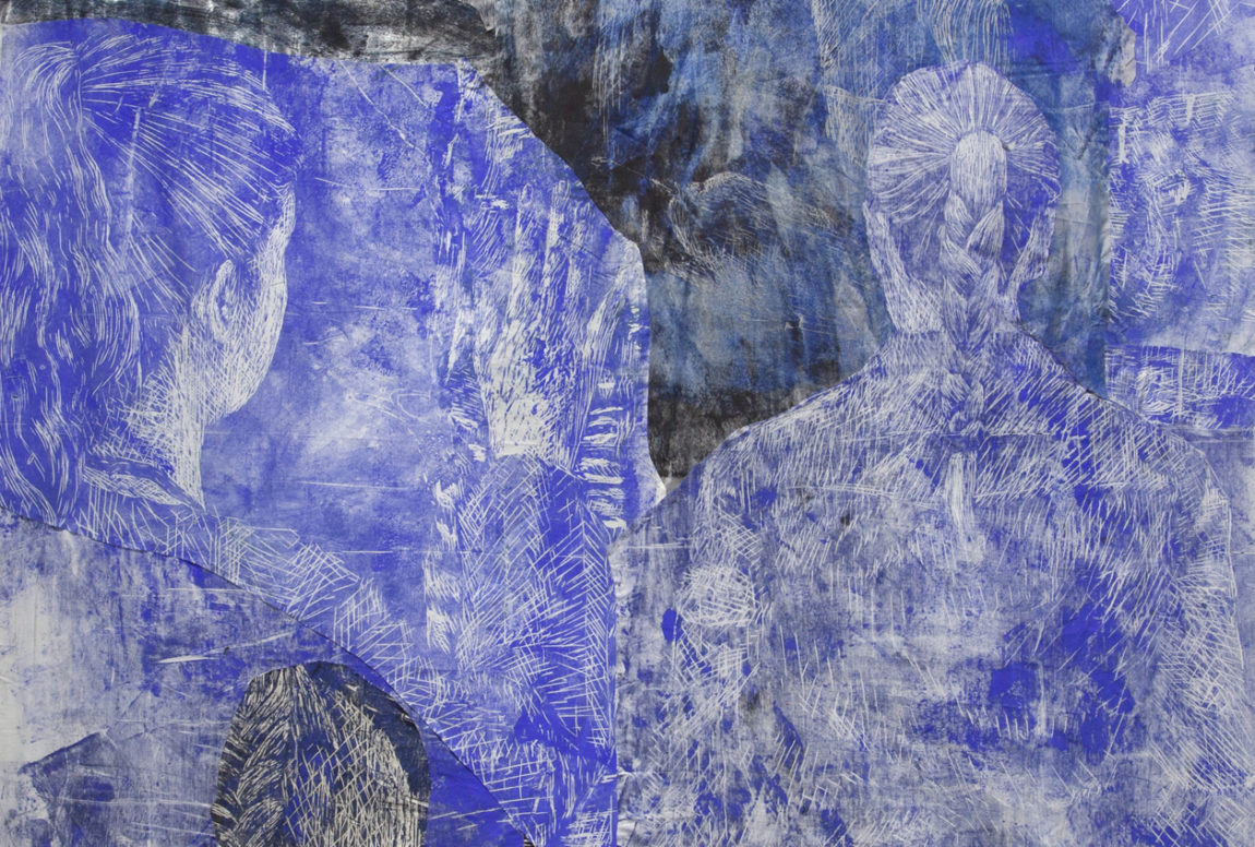 Den norska konstnären Idun Baltzersens debut på Galleri Magnus Karlsson väver samman figuration och materialitet i monumentala träsnitt där flickor vänder sig in i bilden.
