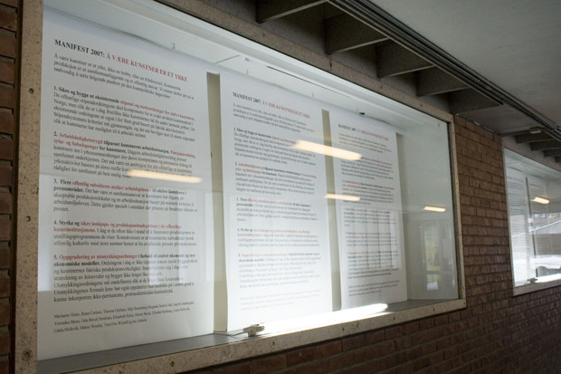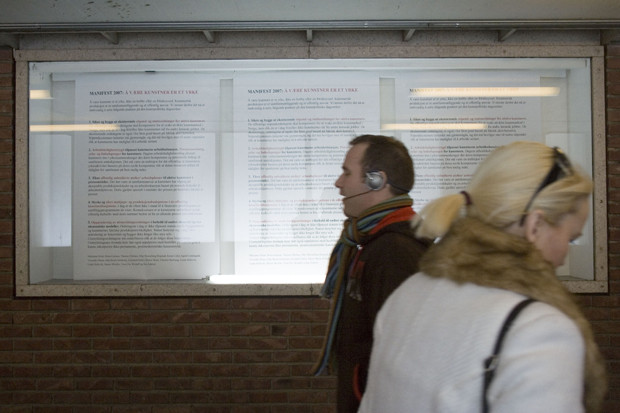 Fredag 16 februar åpnet utstillingen Manifest 2007 på The White Tube på Tøyen T-banestasjon. Utstillingen er del av et prosjekt som tar sikte på å revitalisere det kollektive kunstpolitiske klimaet i Norge, og å sette viktige saker på den kunstpolitiske dagsorden. Les presentasjon og debatt om prosjektet her