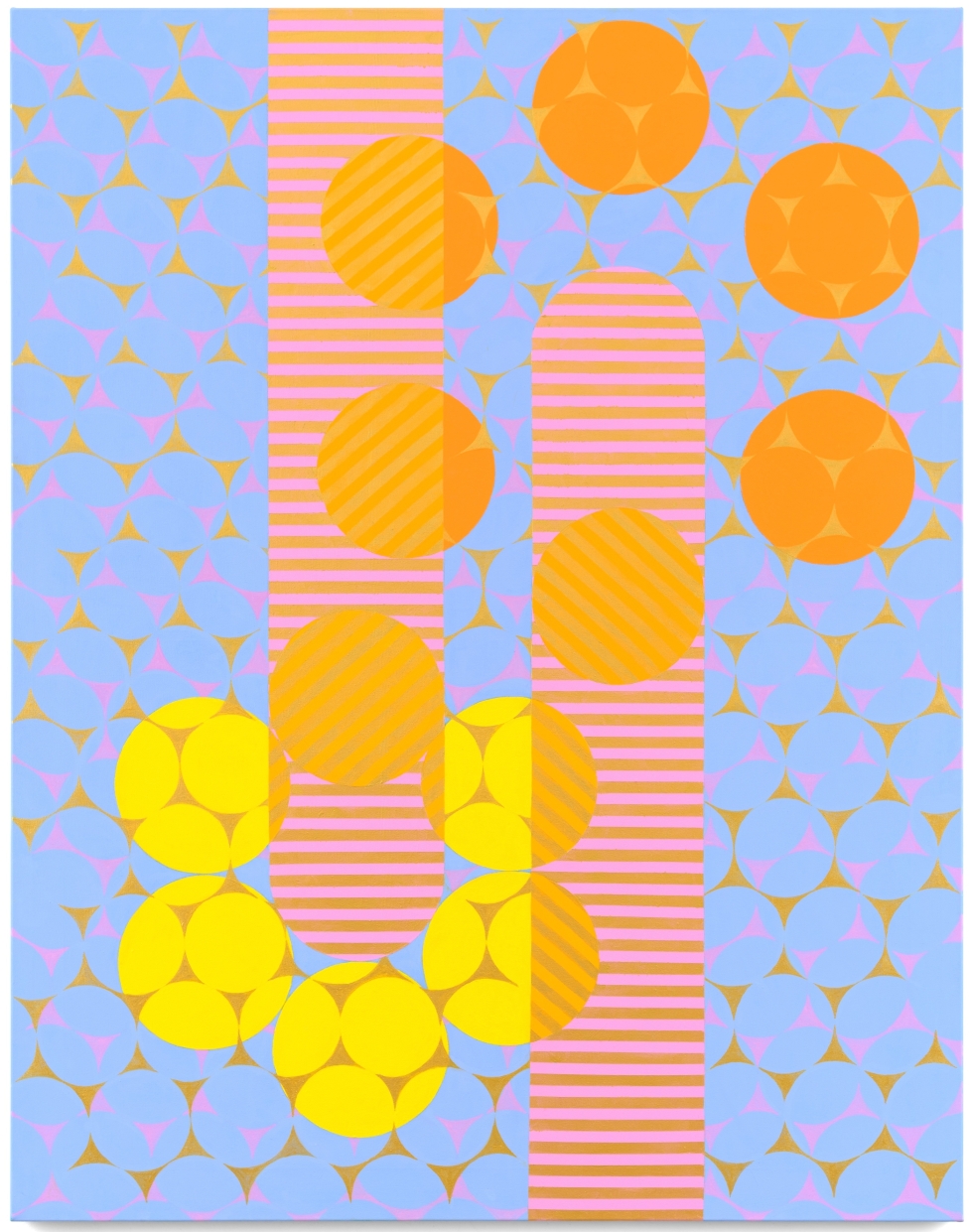 Dessutom bildar relationerna mellan dem negativa former som ibland omvandlas till positiva och då kan dyka upp som mönster i egen rätt, applicerade inuti en grundform. På det, större bildelement: kors, utropstecken, kryss, arkitektoniska element – som även de dubbleras eller delas.