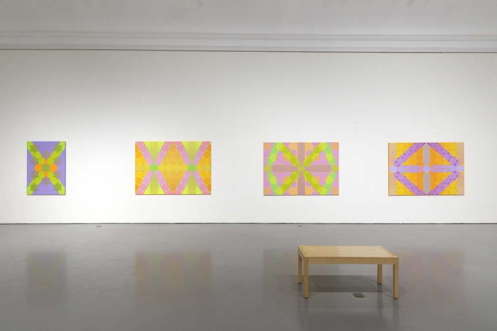 Och genom myllret, som fortgår ibland över flera pannåer, slår färgen emot en såsom någonting som överbryggar avståndet i utställningslokalen. Höga toner, klara och bjärta och uppseendeväckande kulörer – det är framme vid fejset på en innan man ens har börjat närma sig konstobjektet. Blicken paralyseras av dem, samma känsla som när det står still i huvudet. Under den pausen upptäcker man att deras interna relationer skapar nya avstånd, som om där fanns ett bildrum bestående av ingenting annat än färg. Och i samverkan med formelementen bildas ett konstigt flätverk av nivåer och lager som än är ovanför, än under, än hänger ihop, än bryter sig loss från varandra. Man blir dum i huvudet av det. Och alert. Man förstår inte, men kan följa allt som händer, som i en dröm.