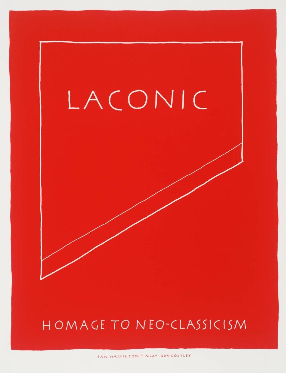 Ordet lakonisk härstammar från Lakonien – de fruktade spartanernas hemland – och namnet på Finlays trädgård har en kritisk udd mot kulturetablissemanget i Edinburg, som kallats för «Nordens Aten». Verken kan tyckas brutala, men de är också sofistikerade, lärda och ganska roliga. Finns det inte, trots allt, ett mått av självironi i Finlays grandiosa utspel?
