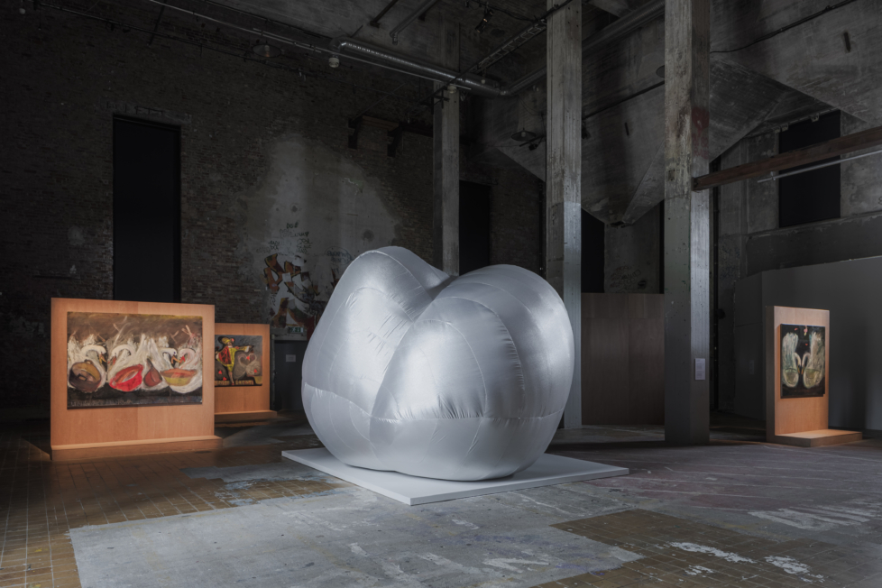 I left the museum disheartened, hoping for a more compelling curatorial statement at GIBCA’s main venue Röda Sten. Here, works by some ten artists have been installed across four floors at the disused industrial building. Upon entering the vast second-floor hall, a series of paintings by Rosalind Nashashibi were visible through an ominous fence. Scrawled across the canvases, the acronym “UNRWA” recalled how the boycott of the Palestinian aid organisation contributed to mass starvation in Gaza. A painting referencing Antoine Watteau’s L’Indifferent (1717) exposes Western hypocrisy in the face of Israeli war crimes. The fact that Sweden was one of the few countries to heed the master’s call to cut UNRWA funding in 2024 made the inclusion even more poignant.