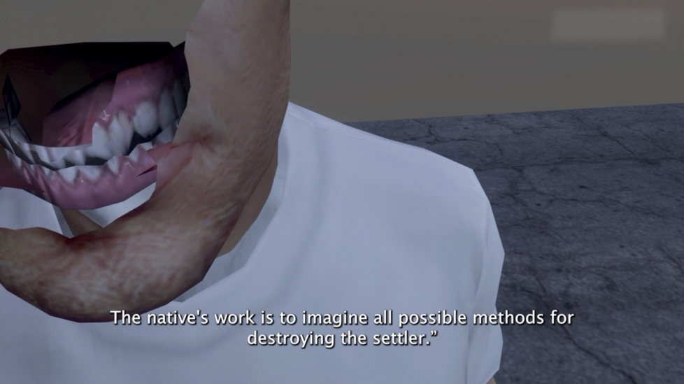 I Shehadehs verk befinner vi oss også i GTAs univers, og ser et opptak av et såkalt gameplay, hvor du passivt ser på andre spille. Narrasjonen tilrettelegger imidlertid for å «lese» den fiktive byen Los Santos som det okkuperte Palestina. Shehadeh forsøker ikke å duplisere den meningsløse volden utøvet av en overmakt mot forsvarløse, slik som Farocki. Volden er implisitt og latent. Derimot forsøker kunstneren gjennom sin spillatferd å glitche, og vise alternative måter å eksistere i denne konstruerte verdenen på. Idéen er klar. Shehadeh går inn som rusk i spillets strømlinjeformede design, med subtile intervensjoner. Melankolien ligger i det faktum at man som enkeltspiller knapt noensinne vinner over kasinoet.