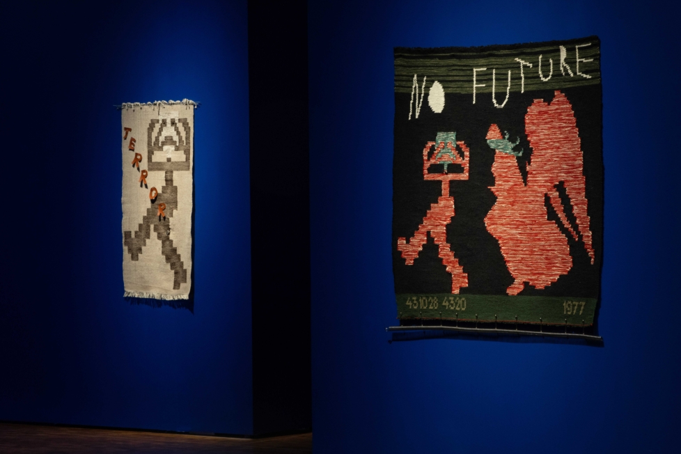 En annen pådriver for andre samfunnsordninger er den pønkete Charlotte Johannesson. Hun er representert ved tre humørfylte vevnader (1970/2019, 1977, 2019) med paroler og piktogrammer. Johannesson var tidlig ute med å kombinere vev og datagenerert grafikk. Hullkort brukt til tekstilproduksjon er binære. Tekstilkunstnere her til lands har også måkt vei for bruk av digitale virkemidler i kunstproduksjon da datamaskiner knapt fantes i privat eie. Sissel Blystad (ikke med i utstillingen) tok for eksempel helt ny fast- og mykvare i bruk for å lage kunst lenge før det var gjengs ellers i samfunnet.