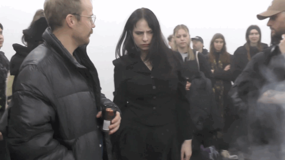 Temat blev särskilt tydligt i fredags kväll då Haugerud i samarbete med konstnären Maddie Kuzak framförde performancet RAGEBAIT (2025). I kaotiska scener gestaltade duon ett punkband, en vargtik som råkade para sig med sitt halvsyskon och en katt (?) som skulle föda. Samtidigt avbröts de gång på gång av en man med dolt ansikte och bar överkropp som antingen knivhögg dem eller spelade extremt högt på sin elgitarr. Vid den första knivhuggningen gick faktiskt små chockvågor genom den luttrade konstpubliken.