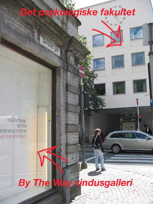 By The Way er strategisk plassert i et veikryss. Det mest interessante er hvem som er galleriets nabo. Rett over gaten ligger Det psykologiske fakultet, et av de mest vellykkede studiene i profesjonsbygging Norge har sett. I 1948 var «psykologi» et av emnene ved examen philosophicum. I 1958 fikk man en stipendiat med psykologi som tema på Filosofisk institutt. I 1963 opprettet man Institutt for psykologi, og de to første grunnfagskandidatene ble uteksaminert høsten 1964. Deretter vokste det jevnt og trutt, og femten år senere ble Det psykologiske fakultet ved Universitetet i Bergen opprettet, som det første i landet. For tiden har man et seksårig profesjonsstudium med rundt 30 studenter per kull. Med omtrent tilsvarende studenttall i Oslo og Trondheim utdanner man roughly like mange psykologer som kunstnere hvert år. Staten mener altså at man trenger like mange kunstnere som psykologer. Men psykologer kan til forskjell fra kunstnerne vente seg fast jobb med tilhørende goder, og de nyter sågar en privilegert posisjon som en av premissleverandørene i den offentlige samtalen. Mens kunstnere gjerne blir overhørt uansett hva de uttaler seg om (kanskje med mindre de benytter seg av døde kroppsdeler eller lignende) så er offentligheten stort sett alltid interessert i hva psykologene måtte mene, uansett hva man egentlig snakker om.