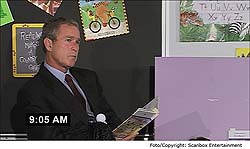 Det heter seg at alle nyheter egentlig har vært fortalt før. æNews” er egentlig æoldies”, fordi nyheter produseres over samme narrative skjema, igjen og igjen. Denne nyhetssosiologiske innsikten renner meg i hu etter at jeg har sett Michael Moores 9/11. For her satt jeg altså og så på en film som fortalte meg det jeg visste fra før: Om de utrolig tvilsomme metodene som George W. Bush jr. og hans republikanske kumpaner, anvendte for å snyte Al Gore for valgseieren i den Amerikanske presidentkampen. Om hans vanstyre og synkende popularitet i det amerikanske folk, om hans udugelighet som investor og leder i oljebransjen, om hans fars mektige forbindelser til Bin Laden familien, til Saudia Arabia og internasjonal oljeindustri.