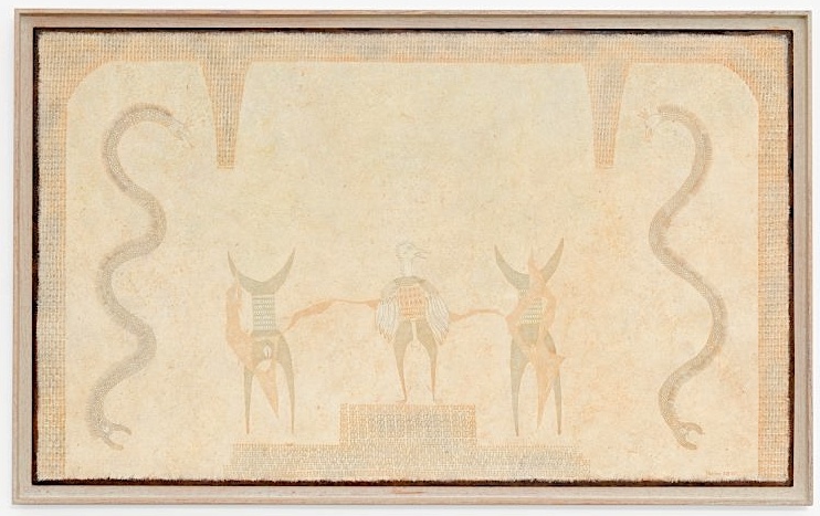 Jag börjar torsdagkvällen på Östermalm och grupputställningen Mark Makers på Galerie Nordenhake där jag direkt fastnar för Thea Ekströms (1920–1988) hieroglyfiska oljepanåer. I hörnen av rummet skjuter den amerikanske konstnären ektor garcias fräsiga lerkärl upp ur marken. Längs skaften syns spår av handens tryck och grepp, som både format och smetat ut leran. Några av dem har fått som svamphattstoppiga lock med ett hål längst upp, medan andra är öppna. Brasilianska Ana Cláudia Almeidas abstrakta målningar känns däremot lite blyga bredvid Ekströms mytologiska motiv: håriga ormar, skumma tecken och en fågelman med ståfräs på målad stenimitation. Det är en lurig sexuell stämning över hela presentationen.
