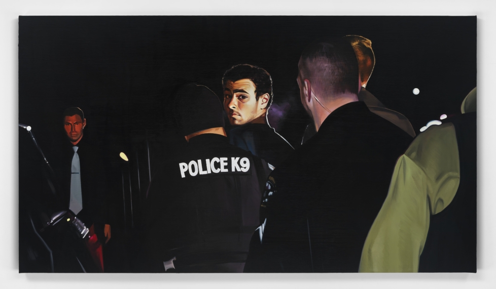 Whereas the Pictures Generation, to which Longo belongs, was primarily concerned with problematising uncritical notions of originality and authenticity, McKinniss uses the same strategies to reveal how all kinds of narratives – from news reports and films to memes – now circulate with the same speed and intensity, thereby acquiring the same epistemological status. McKinniss operates in a context where images move between traditional and social media, and where narratives that touch on questions of right and wrong have become porous and hollowed out, made into memes or entertainment. His work addresses this breakdown of consensus reality – the condition we refer to as “post-truth” – through paintings that can be read as imprints of a prevailing relativism in which all stories are granted equal validity.