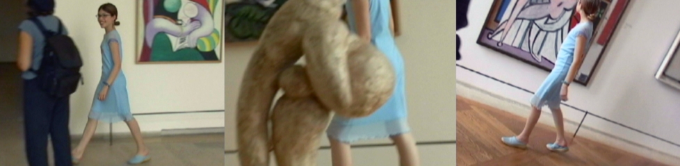 God kunst er ofte præget af en vis nonchalance, værkerne er ligesom rystet ud af ærmet på en uanstrengt måde, som er umuligt at fake. Lutz Bacher er sådan en kunstner. Det opstår gerne ved, at hun jonglerer med noget tydeligt og utydeligt på samme tid. Eksempelvis i det fem minutter lange videoværk Girl in a Blue Dress (2002), hvor Bachers kamera følger en pige, omkring den tidlige pubertet, der går omkring på Musée Picasso i Paris. Kameraet filmer sjældent højere end pigens hals, en enkelt gangs ses hendes ansigt, ellers kun hendes lyseblå sommerkjole og de bare ben i matchende sko, der passerer mesterens værker og andre besøgende. Optagelsen er meget håndholdt, filmer gulvet, albuer og rygsække, og er måske taget uden samtykke? Et mærkeligt mix af amatøroptagelse, overvågning og halvvejs overgreb, uden at der egentlig sker noget.