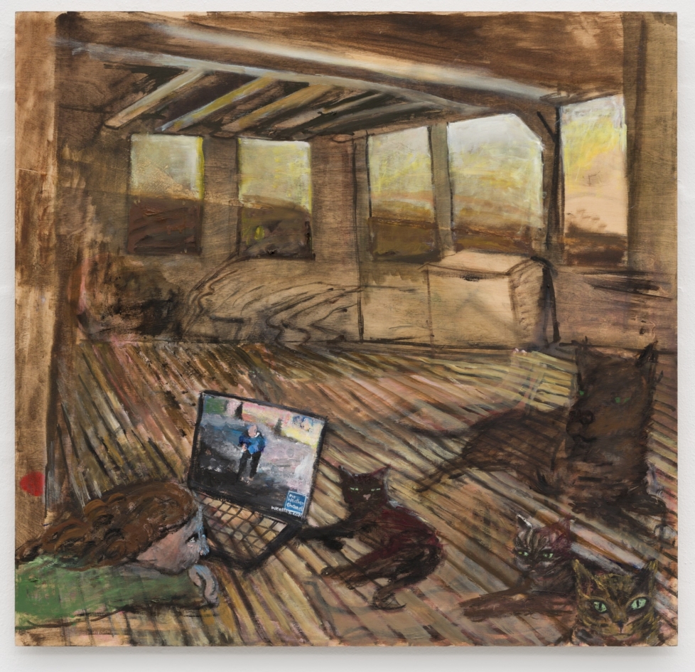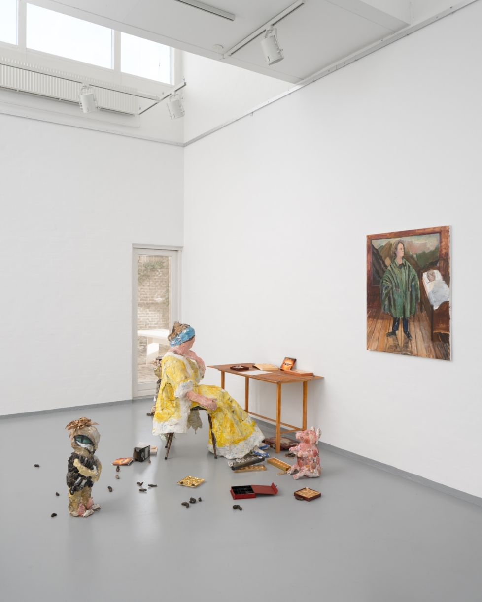 I hvert fald er installationen omgivet af værker, der kobler bayerske bjælkehytter – von Wulffens families hjemegn – til den tyske kunsthistories forkærlighed for farven brun, som hos en maler som Franz Defregger. Interiørbillederne er halvtomme og svøbt i efterkrigstidens skyldfølelse, som hos Anselm Kiefer, eller proppet med pittoresk folklore og grotesk bayersk idyl, som i værket Musische Mutter (2019), hvor en flok smågrise tripper rundt om endnu en version af Vermeers moder.