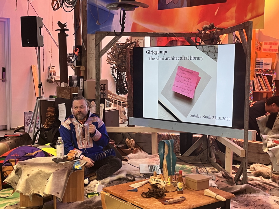 Som en lille, trodsig intervention i alt den pæne, europæiske hvidhed har den samiske kunstner og arkitekt Joar Nango skabt en grønlandsk version af sit mobile bibliotek over samisk arkitektur, Girjegumpi (2018- ), der blandt andet har været vist i den nordiske pavillon på den 18. Venedig arkitekturbiennale. Biblioteket, et blødt rum med rensdyrskind og gulvpuder, udgør festivalens talkscene, og den hyggelige, småkaotiske opbygning fremstår som en hyldest til den helt særlige opfindsomhed, som gør det muligt for samer og inuit at klare sig i omgivelser med knappe ressourcer.
