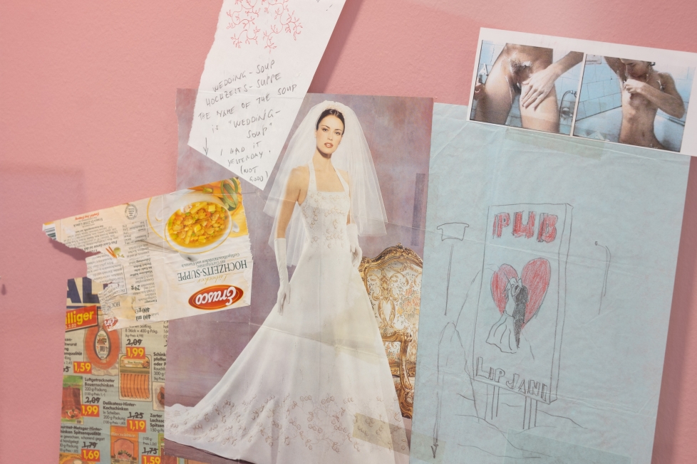 I rommet til venstre for inngangen er to av veggene malt med et lyserosa felt midt på, og her viser jugoslaviskfødte Tanja Ostojić verket Looking for a Husband with EU Passport (2000-05). Kunstneren forteller gjennom tekst, video og bilder om da hun la ut en kontaktannonse for å finne en mann med pass fra EU. Ostojić ville sikre seg oppholdstillatelse i Vest-Europa, og stille spørsmål ved hva et ekteskap er og kan være. Vedlagt annonsen lå et bilde av en naken og helbarbert Ostojić, som for å understreke at hun ikke ville skjule noe, verken hva hun hadde å tilby, eller hva hun håpet å oppnå. Etter å ha utvekslet over 500 brev med potensielle friere, landet Ostojić på den tyske kunstneren Klemens Golf, og deres første møte ble arrangerte som en performance utenfor Museet for samtidskunst i Beograd. En usentimental bryllupsseremoni fulgte, opplyser teksten i fotoalbumet Wedding Book (2000-05), plassert i en glassmonter midt i rommet. Og da ekteskapet, etter at kunstnerne hadde bodd tre år i Düsseldorf sammen, kun ledet til et toårig visum, bestemte de seg for å skilles.
