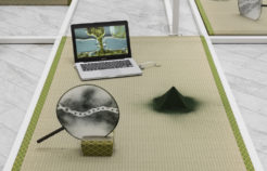 Everything is written in algae dust in Astrid Myntekær’s densely referential installation where myths and science contribute to a meditation on the world’s reduced lung capacity.