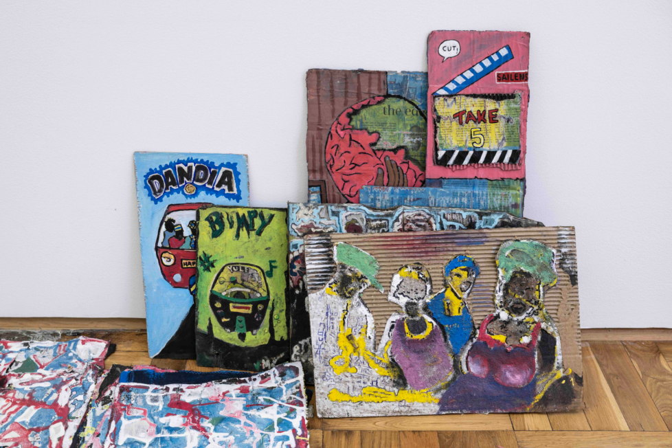På det kunstnerdrevne galleriet Entrée viser det kenyanske kunstnerkollektivet Maasai Mbili en enorm mengde uinnrammede trykk og malerier på papir. De er festet direkte på vegg eller ligger i bunker og stabler på gulvet langs veggene og i vinduskarmen. Presentasjonen er uhøytidelig og minner om et julemarked, der besøkende står fritt til å bla i og flytte på verkene. Kollektivet ble grunnlagt i 2001, i Afrikas største slumområde Kibera utenfor Nairobi, og består i dag av elleve kunstnere. Motivene er varierte og spenner i uttrykk fra figurative studier av mennesker og rovdyr over det abstrakte og memeaktige til stiliserte bedriftskilt. En serie på fem malerier i vannfarge som varierer den samme komposisjonen, skiller seg ut (Joachim Kwaru, utitulert og udatert). Øverste felt viser enkle klesplagg i hvitt på en rød klessnor mot svart bakgrunn. Under svever sorte ben og underkropper foran en tett bebyggelse. Den samtidig håpefulle og melankolske stemningen fremhever slummens prekære livsbetingelser og produksjonsvilkår.