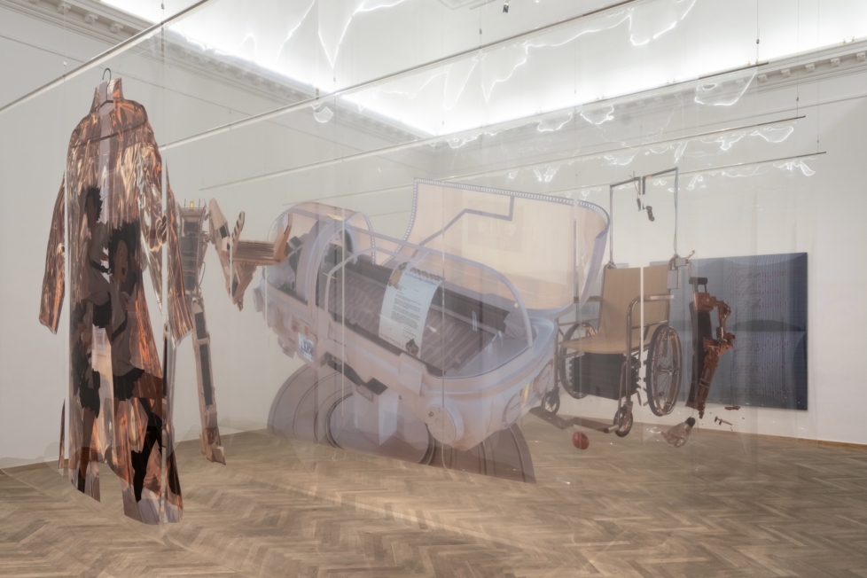 Midt i udstillingens første rum hænger det store værk Things To Come (2014), hvor teknologiske objekter fra historisk science fiction er printet på store transparente stykker plastik; den gennemsigtige jakke fra Blade Runner (1982), Ripleys exoskelet fra Aliens (1986) og den medpod, hvormed karakteren Shaw i Prometheus (2012) udfører en abort af et xenomorph-foster på sig selv. Man kan næsten se igennem det store tæppe; billederne lægger sig i lag på hinanden som en omgang Photoshop.