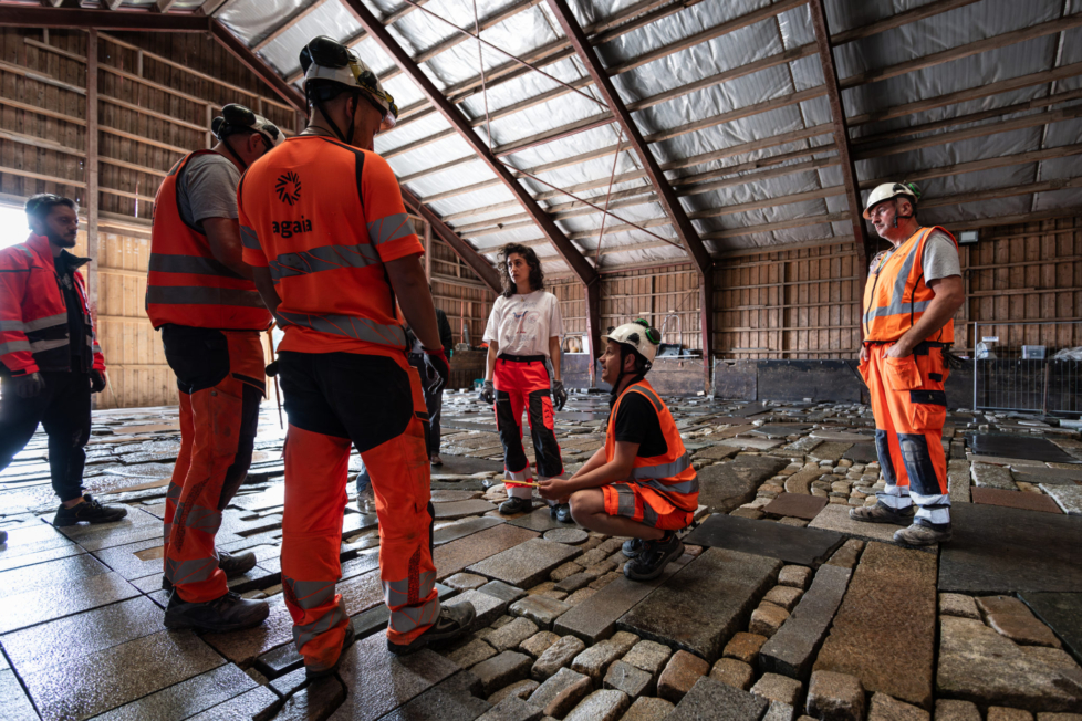 Jumana Manna var syk, og fortalte fra sengekanten – over Zoom – om sin 800 kvadratmeter store steinkollasj Sebastia på Johan Nygaardsvolls plass ut mot Akersgata. Kunstneren har fått donert stein fra blant annet fortau, rådhus, skoler og gårder over hele landet. Disse har ulik vekt og kvalitet, og er innfelt i et uregelmessig mønster på plassen. For Manna var det viktig at arbeidet skulle bygges av noe ødelagt. Hun trakk paralleller mellom det å arbeide med ruiner og den palestinske situasjonen. «I Gaza gjør befolkningen krav på ruinene av de ødelagte husene sine gjennom å plassere teltene sine oppå dem», fortalte hun. Sebastia er en oldtidsby på Vestbredden, som Manna mener at Osloavtalen delte opp på en ulogisk måte. Det har vært med på å normalisere den israelske okkupasjonen og ledet oss til der vi er i dag. I tillegg til å skape et arbeid som adresserer kollektivt eierskap, og som besøkende fra hele Norge vil kunne se sin landsdel representert i, vil hun minne regjeringen på dette.