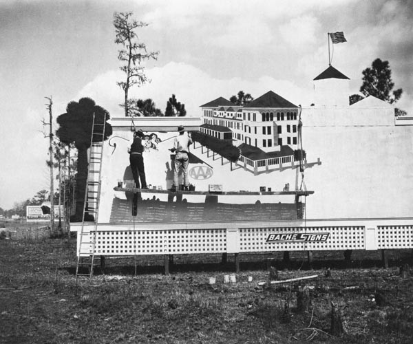 Walker Evans hadde en egen forkjærlighet for plakater, skilt, billboards og logoer med skrifttegn av alle slag som vanskelig kan begrunnes kun med interesse i deres historiske og stedsavhengige opprinnelse. For Evans varte interessen livet ut og forsterket seg med årene, på grensen til fetisjisme. Noe av forklaringen ligger nok i hans litterære tilbøyeligheter og i trangen til å skrive ned lister om alt mulig, samt i farens yrke som suksessfull reklamemann. Et av de mest artige eksemplene på bruk av slike visuelle symboler, kan anskues i fotografiet Billboard Painters, Florida fra 1934. Her har skiltmakerne hugget ned flere trær i forgrunnen for å rydde annonseplass for et feriested (?) omkranset av fullvoksne … trær …
