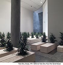 I det største rommet på Astrup Fearnley er den stramme eimen av bordplanker påtakelig, likeså følelsen av skrekk og gru, her forsvinner alle ønsker om en skjorte så lenge live ikke eies, til og med Onos forsøk på forsoning, ettersom alle kistene, (Ex It) det er 60 av dem, hvor noen få er i barnestørrelse, igjen med potteplanter, er beplantet der hvor det gapende kraniet skulle ha vært, strekker ikke til, og det er all mulig grunn til å spørre om hva slags skog hun har i tankene; liksom resirkulasjonen som et vitne om at livet vinner, hvis ikke det er noe dypere som jeg ikke fatter.